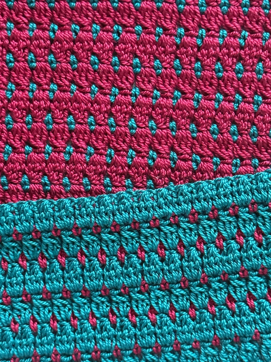Всем привет! Считается, сто многоцветные узоры и вязание жаккарда удел лишь спиц, но я искренне верю, что потенциал крючка огромен, нужно только раскрыть его. Сегодня хочу представить вам простой в исполнении узор, который смотрится необычайно красиво. Комбинирование цветов дает возможность создать неповторимое сочетание и красоту. Для вязания узора понадобится: Раппорт узора - любое нечетное кол-во петель Самое первое - определяюсь какой цвет будет основным, а какой вспомогательный (зернышки) Набираю цепочку из нечетного количества петель основным цветом (цвет №1) + 2 петли подъема. 1 ряд: нужно отметить, что начинается и заканчивается ряд одинаково - провязываю 1 столбик с накидом (ССН)! 1 ССН + 1 воздушная петля (ВП) + (1 пучок + 1 ВП) - повторяю до конца ряда (оставляю 1 петлю в конце) + 1 ССН. Здесь закрепляю петельку с помощью булавки, чтобы она никуда не делась. 2 ряд: прикрепляю нить цветом №2, эта нить будет формировать "зерна" делаю 2 ВП + 1 СБН (провязываю под воздушную пет