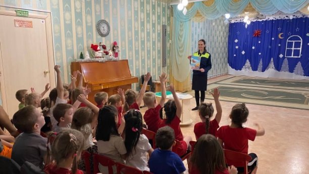 В игровой форме вместе с автоинспектором ребята разобрали правила безопасного катания на санках, ледянках и тюбингах. Малыши активно участвовали в беседе, узнавая, где можно кататься безопасно, а где это категорически запрещено, а так же с удовольствием делились своими историями из жизни. С помощью наглядных карточек проверили знания детей о том, как и где правильно переходить дорогу. Ребята на перебой отвечали на вопросы и показывали отличные значения сигналов светофора, правил поведения на пешеходном переходе и важность внимательности на улице. Проведение таких профилактических мероприятий имеет огромное значение. Именно в дошкольном возрасте закладываются основы ответственного поведения на дороге. Когда правила дорожного движения объясняются регулярно и в увлекательном форм