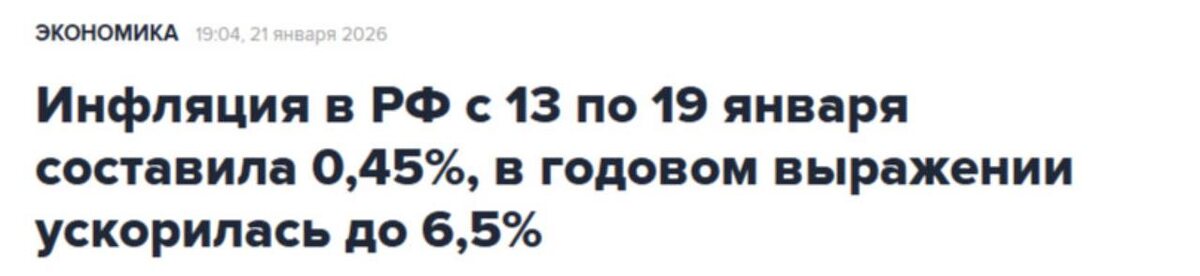 В новый год со старыми проблемами Данные по инфляции продолжают демонстрировать высокую динамику в 2026 году. После резкого скачка на 1,26% за праздничный период (1–12 января) рост цен с 13 по 19 января замедлился до 0,45%, но общий прирост за 19 дней января достиг 1,72%. В годовом выражении инфляция ускорилась до 6,46–6,6%, что значительно превышает целевой ориентир ЦБ в 4%. 🤔 Как это произошло? Основными драйверами роста стали эффекты от повышения НДС до 22%, январской индексации тарифов и продовольственной инфляции, особенно на плодоовощную продукцию (огурцы с начала года подорожали на 28,5%). Существенный вклад также внесли непродовольственные товары и услуги, в частности туризм (поездки в ОАЭ подорожали на 8% за неделю). Рынок реагирует сдержанно. Все еще надеясь на то что эффект высокой инфляции растворится в течении января-февраля. Однако, ключевой вопрос для рынка — реакция Центробанка на февральском заседании. ☝️ Мы знаем, что ЦБ чаще всего использует консервативный подхо