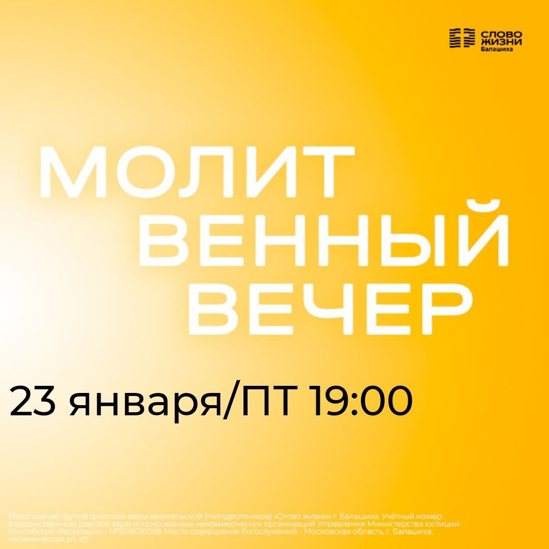 Приглашаем вас сегодня, 23 января, в 19:00 на молитвенный вечер в церкви