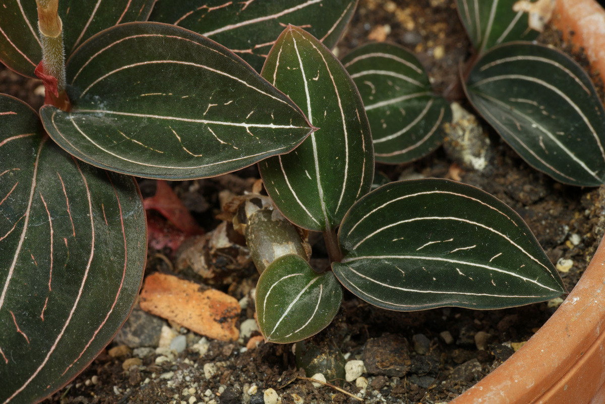 Её настоящее название - лудизия. Хоть это и настоящая орхидея, но её сравнивают с традесканцией гораздо чаще, чем с фаленопсисом (орхидея в привычном понимании). Тем не менее, лудизия родственница именно привычным орхидеям, так как относится к тому же семейству. Другие статьи, которые могут вам понравиться: Однако у лудизии есть несколько ярких отличий: 1. она ценится за свои листья, а не цветки. У многих сортов лудизии есть блеск в прожилках - это самые настоящие блёстки естественного происхождения. Лудизия, разумеется, цветёт, как и любое другое цветковое растение, но её цветочки простые, беленькие на длинном цветоносе. Не сравнится с цветками фаленопсиса. 2. лудизия не растёт как эпифит, как это делает фаленопсис, а значит её не стоит сажать в грунт для обычных орхидей, то есть в кору, кокосовые чипсы и тд. Ей подходит специальный рыхлый грунт, либо чистый сфагнум. 3. лудизия не любит опрыскивания и яркий свет. Сортовые лудизиии (например, Макодес Петола) требуют досветки, иначе лис