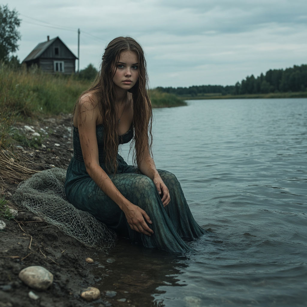 «— Ты меня спас, — сказала она, выходя из воды. — Теперь я буду с тобой. Прошло десять лет, а она не постарела ни на день. И тогда соседи начали шептаться: "У Егора в доме — нелюдь"»... В 1993 году в тихом поволжском посёлке Калиновка жил немолодой рыбак по имени Егор Степанович. Дом его стоял у самой воды — покосившаяся изба с крыльцом, выходящим к реке, заросшему ивовыми кустами. Егор вёл уединённый образ жизни: ловил рыбу, чинил сети, изредка заходил в сельмаг за хлебом и солью. Соседи говорили — «чудак», но не зло, а так, по‑соседски. Никто и представить не мог, что за стенами его дома скрывается тайна. Всё началось лет за десять до этого. В тот вечер Егор заплыл подальше, поставил сети и уже собирался домой, как вдруг услышал странный звук — не крик, не стон, а что‑то среднее между пением и всхлипом. Он направил лодку к зарослям, раздвинул камыши — и увидел её. Она запуталась в старых сетях, рвалась, но только сильнее стягивала узлы. Кожа — бледная, почти прозрачная, волосы — тёмн