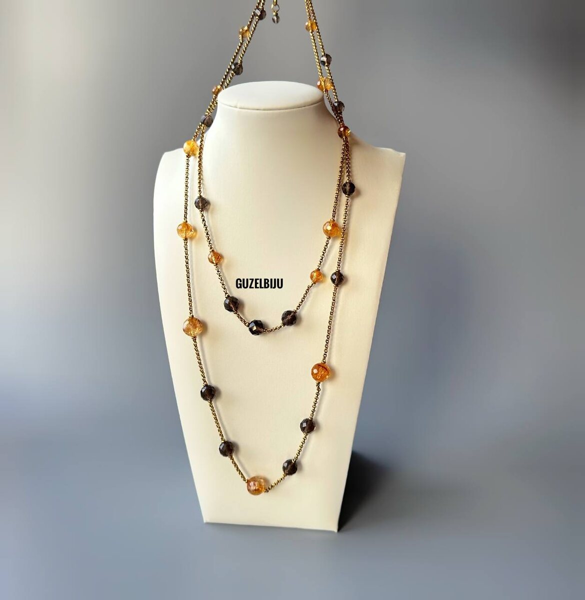 Цепи: раухтопаз, цитрин, малахит, жемчуг.