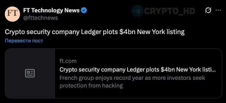 🔥🇺🇸 FT: Компания Ledger планирует провести IPO в США с потенциальной оценкой, превышающей $4,000,000,000.