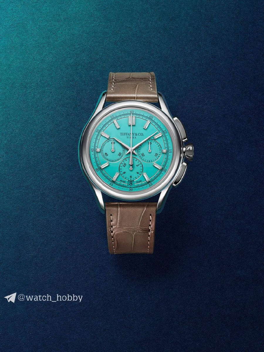 Timer El Primero Chronograph: платиновая лимитка. «Тиффани» - не только про ювелирку и модный голубой оттенок. Компания входит в группу LVMH вместе с «Зенитом», у которого они одолжили калибр. Что с характеристиками: - Корпус из платины - Ремешок из кожи - Бриллиантовый «Тиффани» циферблат - Размер корпуса: 40 мм - Сатиновая и зеркальная полировка - Сапфировое стекло - Водозащита 100 метров - Дата - Хронограф - Автоматический калибр Zenith El Primero 400 с запасом хода в 50 часов На самом деле часовое дело и бренд Tiffany связаны очень крепко и, что самое главное, давно. Новой моделью ребята отмечают 160-летие со дня создания одних из первых секундомеров - Tiffany Timer ⏱ Циферблат сделан в фирменном оттенке, на нем расположились элегантные полированные золотые стрелки, логотип компании и, конечно же, 12 бриллиантов багетной огранки, являющиеся часовыми индексами. Апертура даты расположилась в положении «6 часов» и… идеально вписана в общую картину. На один циферблат уходит аж 50 ч