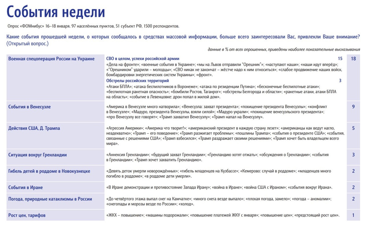 Результаты еженедельного опроса 16–18 января 2026 года.