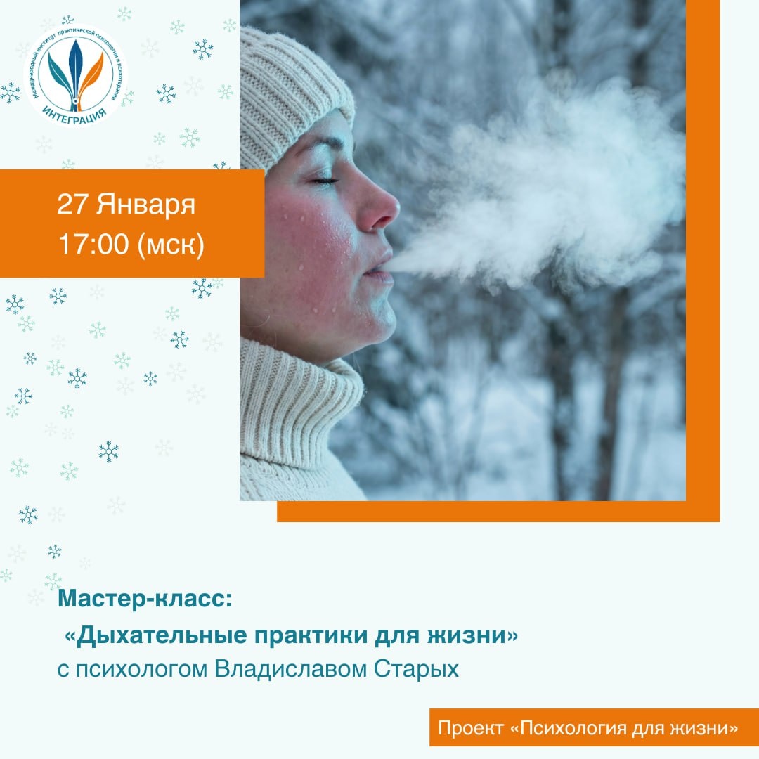 ? А в моменты спокойствия наше дыхание глубокое и свободное? Дыхание – это основа нашей жизни, мы не можем прожить без дыхания и нескольких минут. То, как мы дышим, естественно влияет на то, как мы живём, на качество нашей жизни. Благодаря дыханию и методам телесно-ориентированной психологии, мы можем самостоятельно влиять на свои состояния здесь и сейчас. На мастер-классе «Дыхательные практики для жизни» с Владиславом Старых вы: 🔹 узнаете, как ваше дыхание отражает вашу внутреннюю жизнь; 🔹 познакомитесь с методами телесной психологии, которые работают через дыхание; 🔹 получите простые, но мощные дыхательные практики для снятия тревоги, восстановления энергии и возвращения в контакт с собой. 📅 27 января в 17:00 (мск) в рамках проекта еженедельные вебинары по подписке «Психология для жизни». 👉 Регистрация