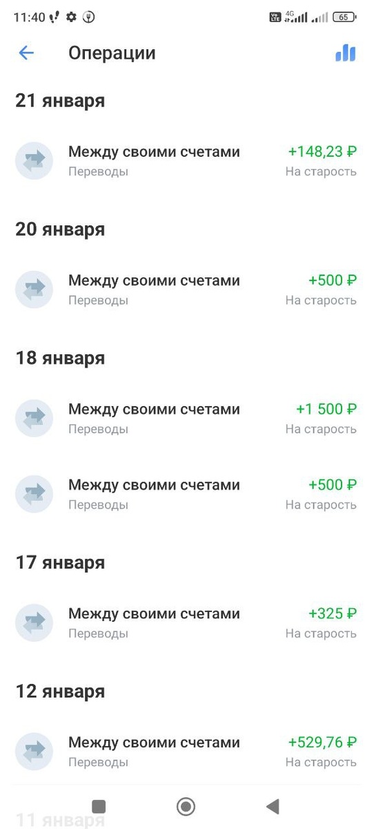 Несмотря на то, что в январе доходы совсем небольшие, я целых восемь раз пополняла копилку: на старость.