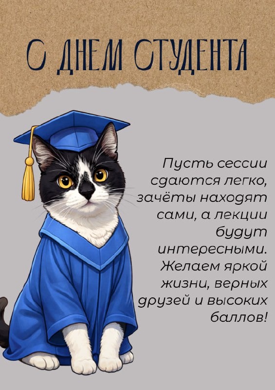 Пусть этот день будет наполнен самыми яркими эмоциями, гордостью за пройденный путь и радостью от того, что вы – часть нашего большого и дружного университетского сообщества. Гордимся вами, наши студенты, и желаем нескончаемого запала, лёгкой учёбы и веры в свои силы. Вы – наше будущее! Особую праздничную татьянку создала студентка ТГУ Арина Сочнева. Это поздравление – от студента студентам 💙 🙂 САЙТ | 👻 MAX | 💙 ВК | 📝 ДЗЕН