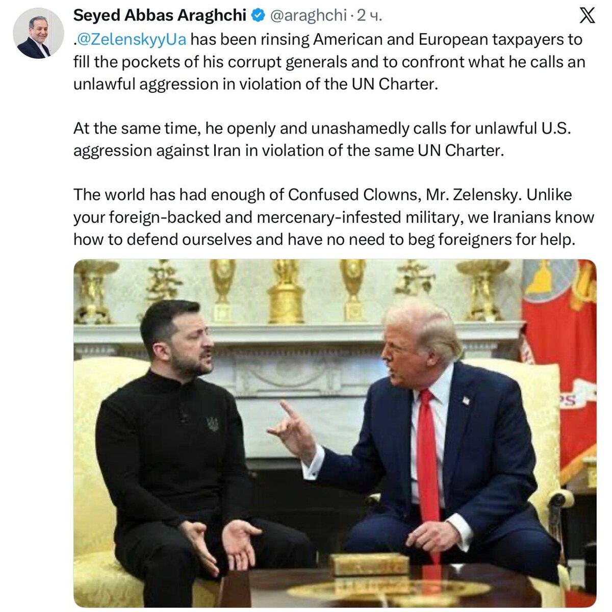 Iran FM Abbas Araghchi on Zelensky