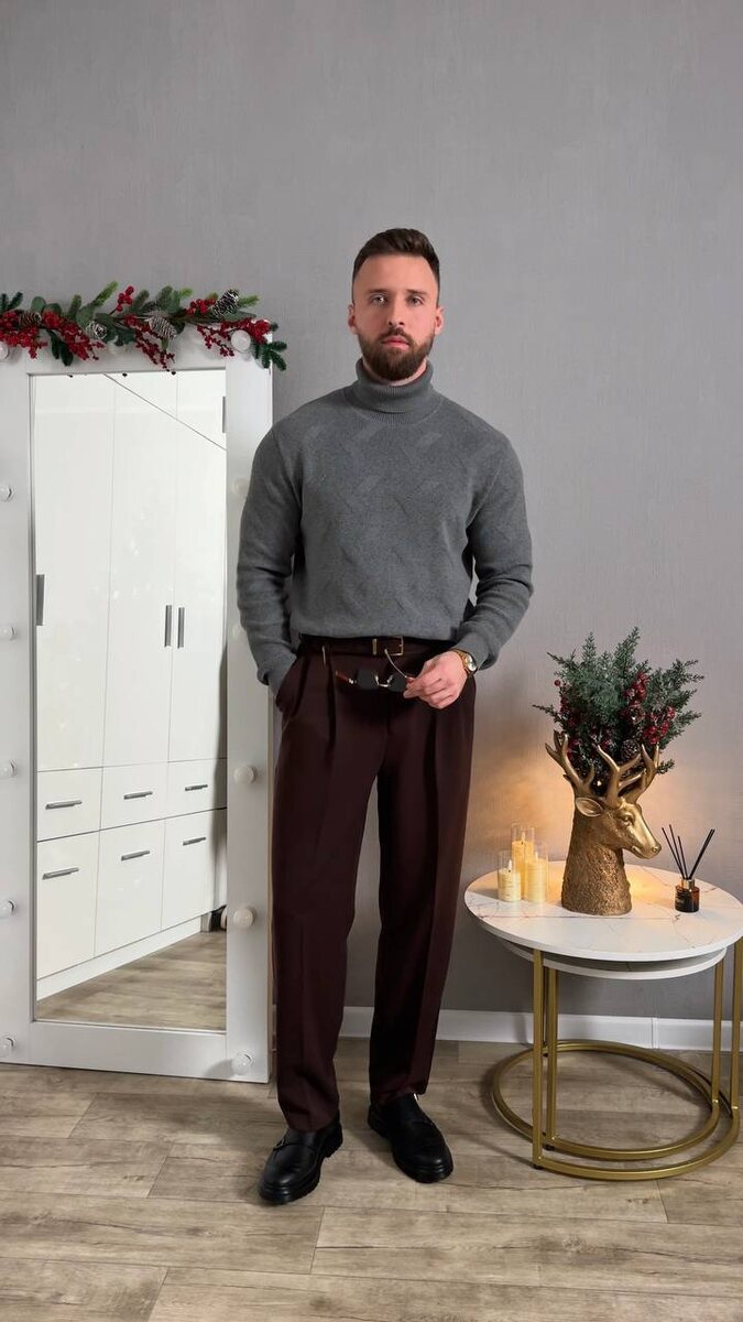 | 1. Прямой силуэт Не обтягивает и не висит — за счёт этого: • не подчёркивает живот, • не утяжеляет плечи, • визуально выравнивает пропорции. Поэтому он одинаково хорошо смотрится и на худых, и на спортивных, и на мужчинах с плотным верхом. 2. Правильная плотность Джемпер не «собирается» под ремнём и выглядит аккуратно даже заправленным в брюки. 3. Высокий воротник Вытягивает шею, делает образ собранным и спокойно заменяет рубашку или шарф. Модель можно посмотреть на Wildberries: https://www.wildberries.ru/catalog/541128479/detail.aspx 📍В канале также оставили небольшой подарок для тех, кто выбирает наши вещи в этом сезоне. Информация в закреплённом посте.