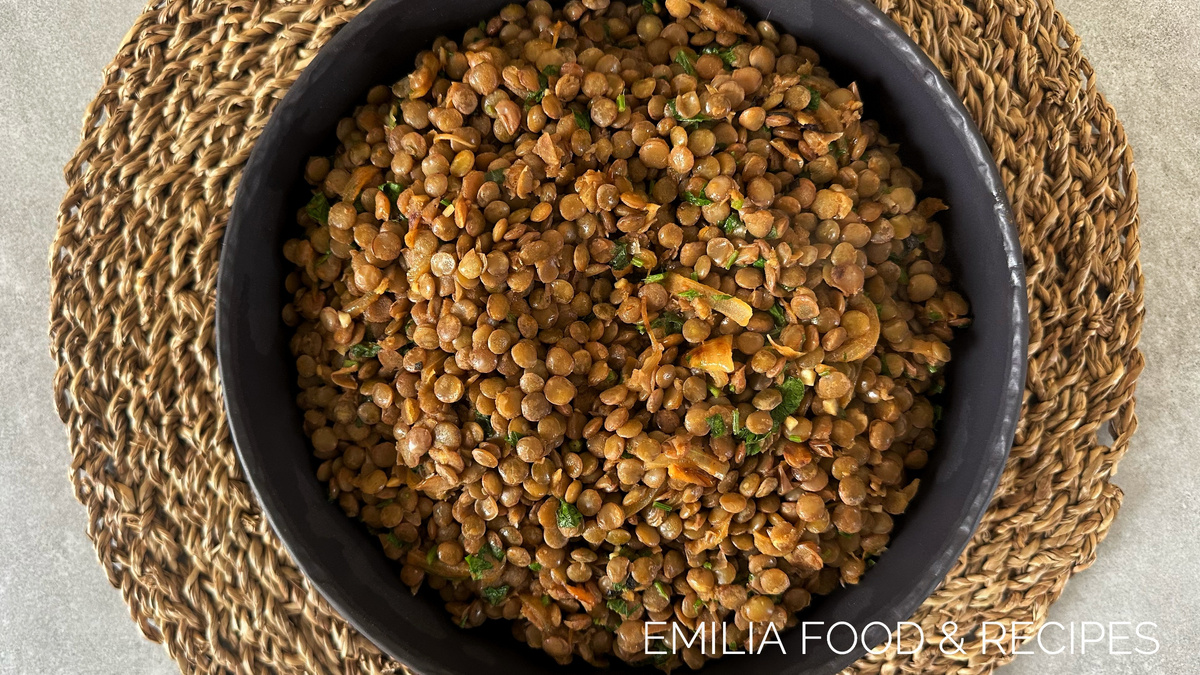 Друзья, добрый день! А давайте сегодня приготовим чечевицу. Я ее готовлю самыми различными способами. Но этот вариант один из самых простых и любимых. Понадобится чечевица. Любая. Я использую "Канадскую зеленую". Если возьмете другую, то время приготовления смотрите на упаковке. А также: зелень (у меня кинза, петрушка, фиолетовый базилик), томатная паста, лук, чеснок и аджика. По поводу аджики. Самый идеальный вариант - возьмите абхазскую или мегрельскую. Если таковых нет, то можно взять любую, которая нравится и дополнительно 1 чайную ложку хмели-сунели или 0.5ч.л. уцхо-сунели. Список ингредиентов будет в конце. По идее эту чечевицу замачивать необязательно. Но я замачиваю. Во-первых, так она легче переваривается в организме, во-вторых, после замачивания она варится быстрее и соответственно остается более полезной. Поэтому хорошо промываю и замачиваю на 2-3 часа. Затем сливаю воду. Еще раз промываю. Заливаю свежей водой и ставлю вариться на средний огонь. В конце можно посолить.