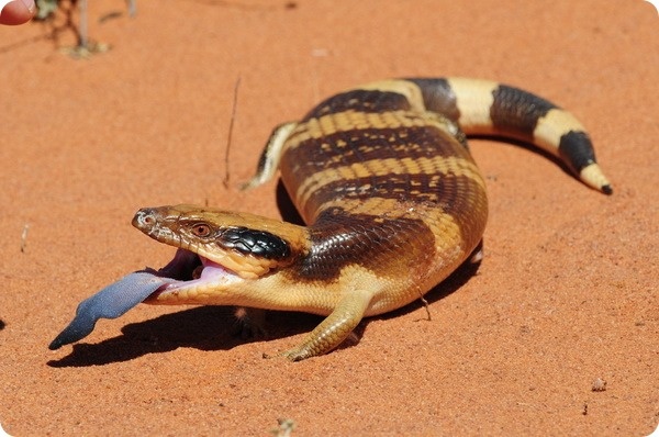 Когда западная тиликва чувствует угрозу, она не бросается в бегство, а предпочитает защищаться. Она может расплющить свое тело, чтобы казаться больше, шипеть и, конечно же, высунуть свой ярко-синий язык, который может отпугнуть хищника. Если это не помогает, она может укусить, но её укус, как правило, не опасен для человека.