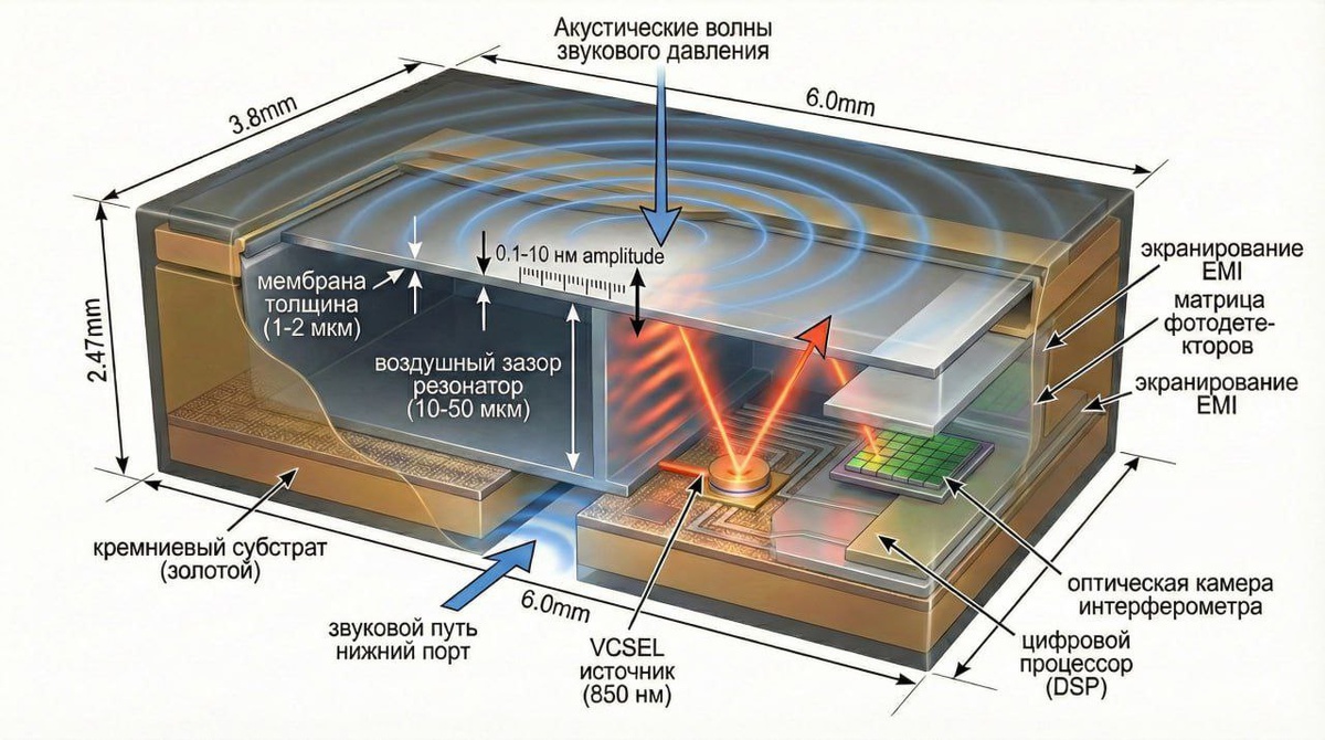 В конце 2025 года In-Q-Tel — венчурный фонд, через который ЦРУ финансирует перспективные технологии — вложился в норвежскую компанию sensiBel. Фонд существует с 1999 года и работает исключительно на разведсообщество США: ЦРУ, АНБ, ФБР и ещё десяток аббревиатур. Когда они во что-то вкладываются — значит, технология нужна для вполне конкретных задач разведки. sensiBel делает микрофоны нового поколения. В обычных микрофонах движение мембраны измеряют электрически. В sensiBel — лазером. Обычные MEMS-микрофоны давно достигли потолка по качеству — шумят, не справляются с громкими звуками. Оптические микрофоны sensiBel шумят в три раза меньше, а динамический диапазон у них 132 децибела. Это значит, что один и тот же микрофон услышит и шёпот, и взрыв — и ни то, ни другое его не «убьёт». Компания разрабатывает технологию для широкого спектра применений, включая потребительскую электронику. Но если эти микрофоны окажутся в таких устройствах, разведка получит кое-что ценнее любого шпионского га