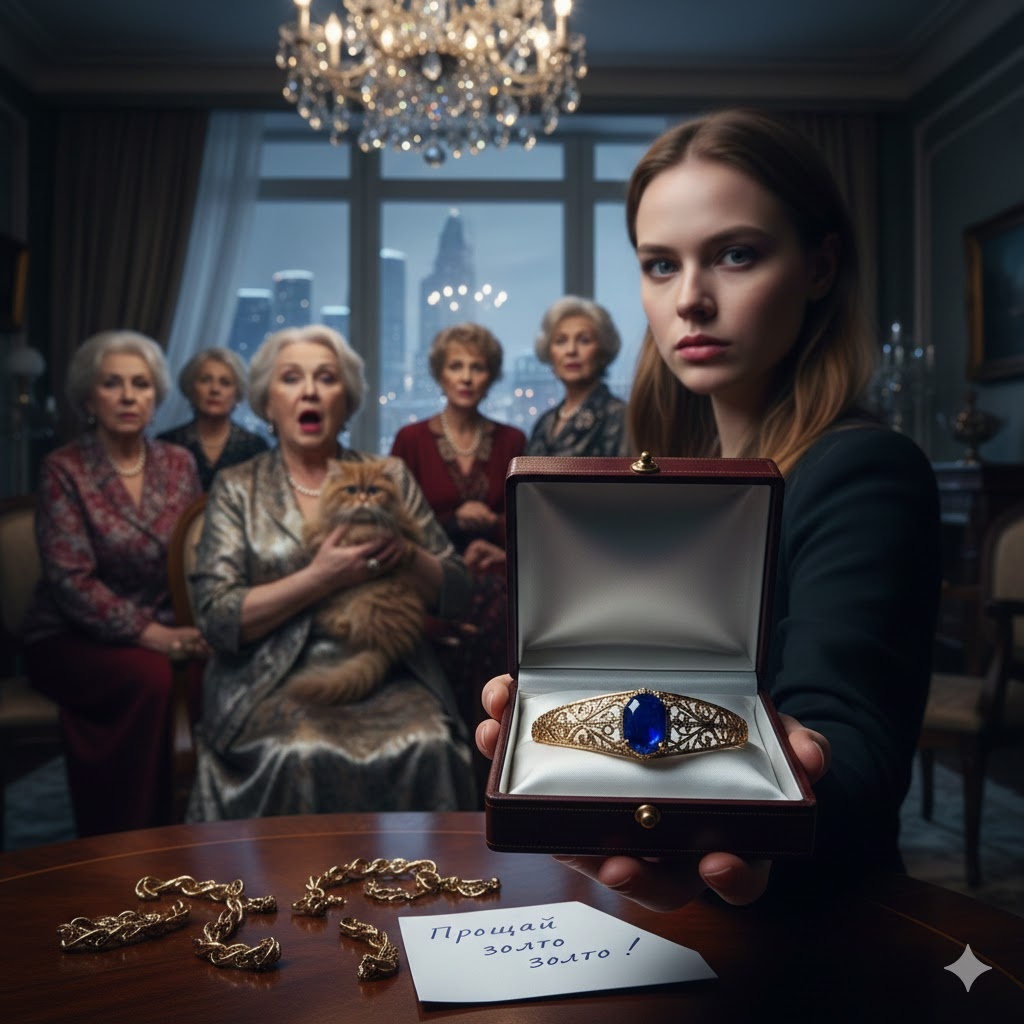 Взгляд упал на бархатную коробочку с браслетом, которую она бросила на тумбочку в прихожей. Свекровь назвала его «дешевкой». Анна открыла её еще раз. Золото мягко мерцало под светом люстры. Сапфиры были маленькими, но чистыми, как капли утреннего неба.