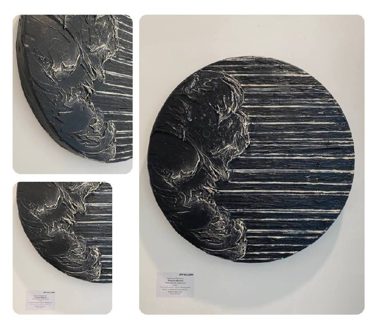 Льняной холст, грунт, текстурная паста, интерьерные краски, акриловый лак.