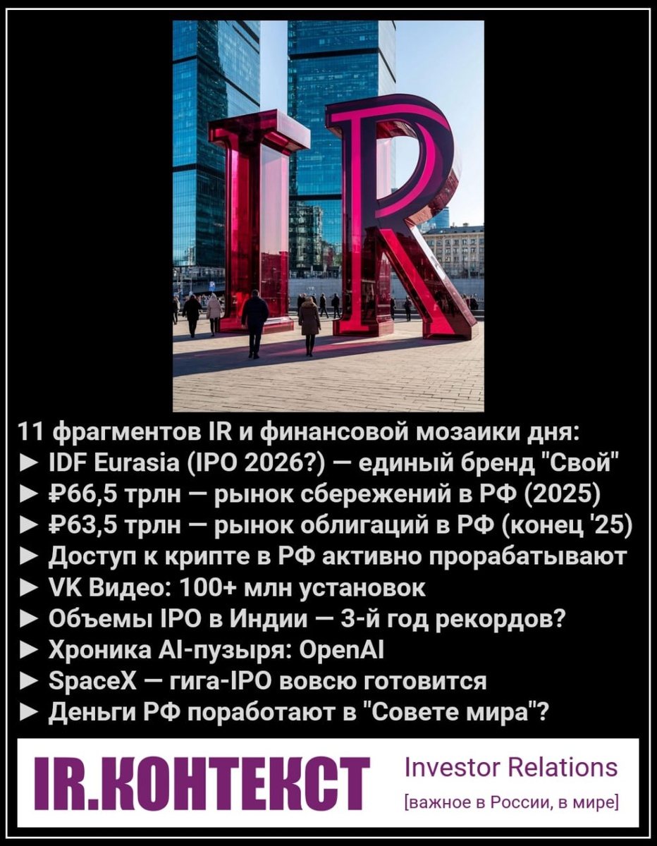 ► +16% — рост рынка сбережений в России по итогам 2025 года, объём рынка превысил ₽66,5 трлн. (ВТБ)
