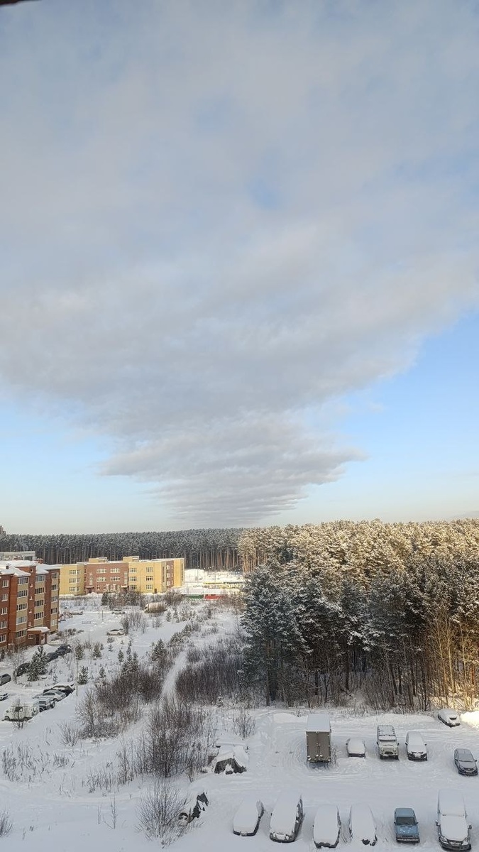 Пар от Ново-Свердловской ТЭЦ «зарулил» к нам. Получилось длинное «облачко», которое находится прямо над Берёзовским.