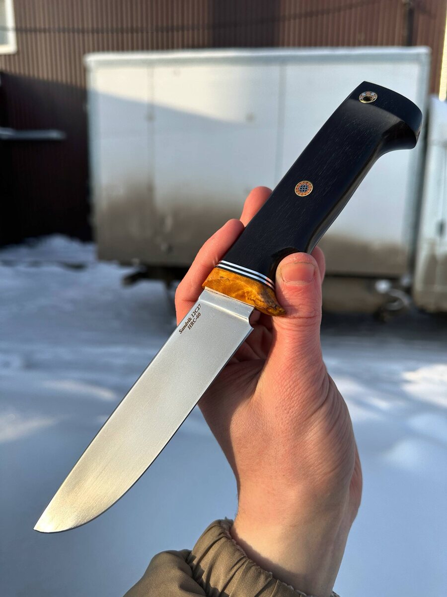 Практичный, острый, не требующий заботы — именно таким должен быть верный нож для охотника, туриста или настоящего коллекционера. «Вепрь» из нержавеющей стали Sandvik 12C27, закалённый до 60 HRC с криообработкой, — это твой выбор, если ценишь долговечность и рабочие качества. ⠀ Рукоять — сочетание чёрного граба и янтарной стабилизированной карельской берёзы**: надёжно лежит в руке и выглядит по-настоящему эффектно. ⠀ 🔪 Особенности: - Клинок держит заточку, не ржавеет, не требует сложного ухода - Затачиваем до «бритвы» — готов к работе сразу из коробки - В комплекте — ножны из натуральной кожи (есть вариант формованных ножен +8000₽) 💰 Старая цена: ~12 630₽~ 🔥 Ваша цена по акции: 8 500₽! Арт: 8514-8 ⠀ Заказывай прямо сейчас: ✉️ @Nazarklinokbot 📲 WhatsApp: +79101343831 ⠀