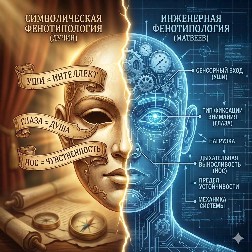 Инженерная фенотипология Матвеева опирается на базу фенотипологических наблюдений, но принципиально не является символической фенотипологией Лучина. Она не спорит с ней, не отменяет её и не подменяет. Она делает другое.