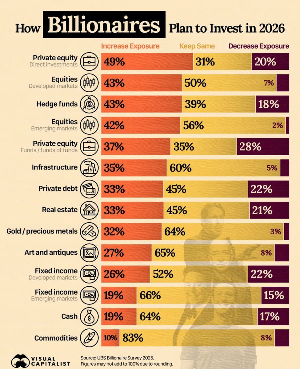 A survey by Swiss financial giant UBS asked its billionaire clients where they plan to invest in 2026.