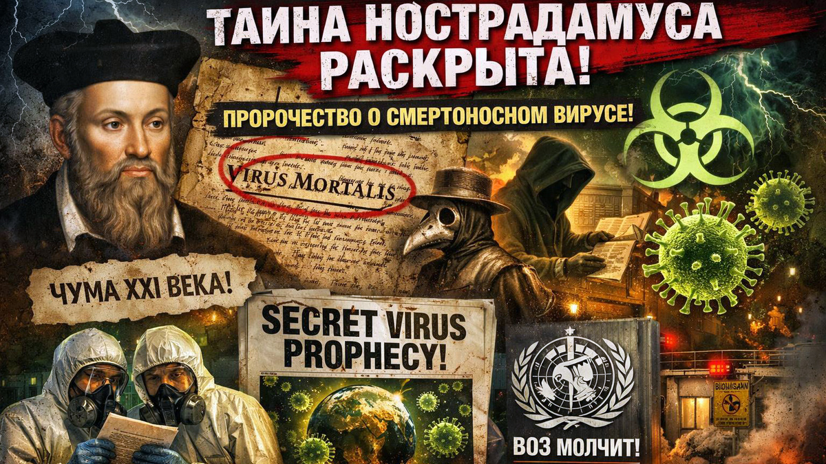 Сенсационное открытие потрясло мир! Знаменитые катрены Мишеля Нострадамуса, которые якобы предсказали обе мировые войны и 11 сентября, хранили тайну нового, еще более страшного вируса. Исследователи-криптологи, годами бившиеся над шифром пророка, наконец-то докопались до истины! Ученые в панике, а ВОЗ молчит! Что же скрывают от человечества? Всё началось с катрена, в котором говорится о «Большом рое пчел», поднимающемся из темноты. Раньше думали, что это про политиков. Но теперь всё ясно! «Пчелы» — это не люди, а вирусные частицы, а «рой» — их стремительное распространение. Ключом стал отрывок, где упоминается, что «кровь окропит святилище, когда Марс проложит свой путь среди звезд». Астрологи вычислили: такое положение Марса сложится именно в августе 2026 года. Но и это не всё! В другом месте Нострадамус пишет о «семи месяцах великой войны, где люди погибают от зла». Ученые уверены: это точный прогноз длительности острой фазы пандемии — с августа 2026 по март 2027 года. Вирус, получив