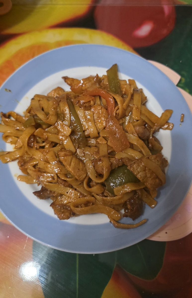 - Заливаем соевый соус и добавляем предварительно отваренную лапшу.