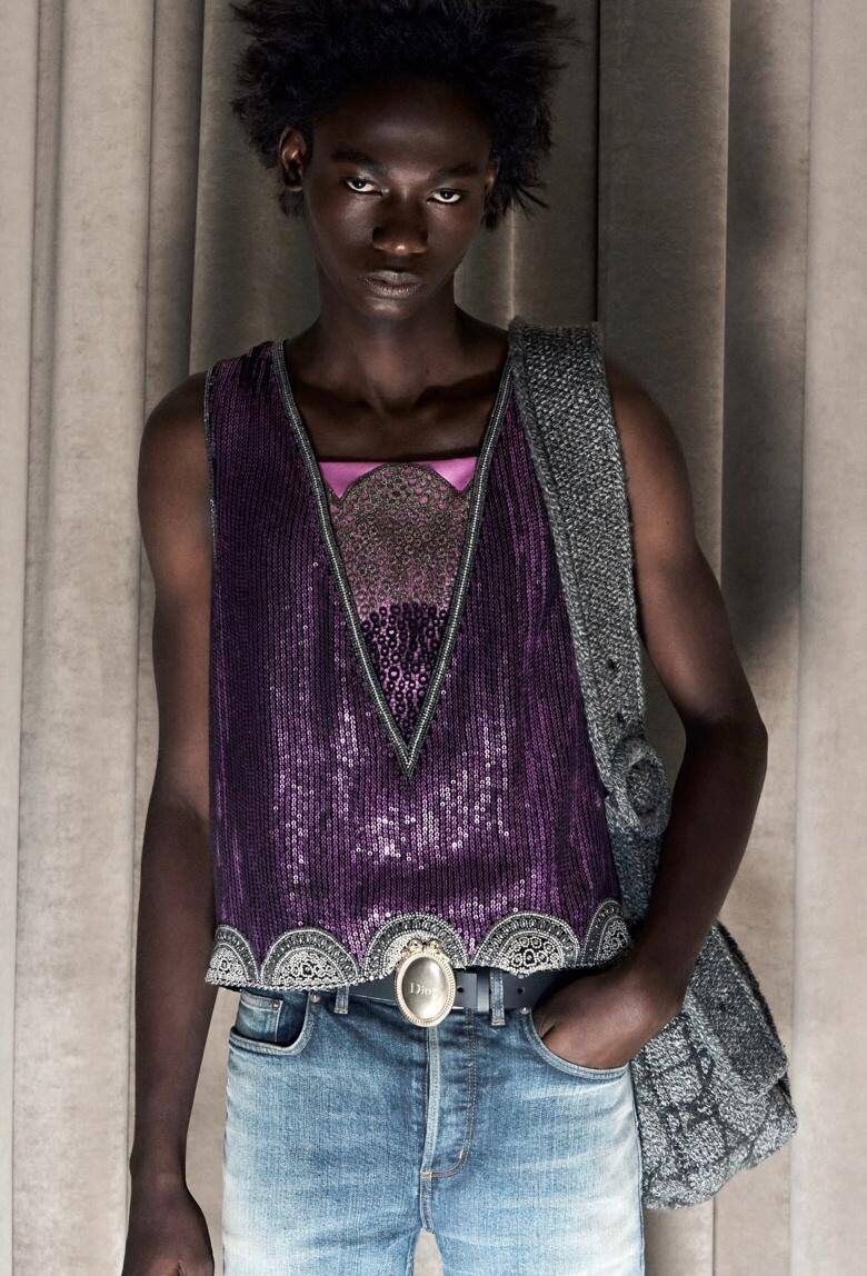 Оказывается, этот интересный элемент мужского гардероба)) - топ в пайетках и кружевах из новой коллекции Dior - точная копия реверанс