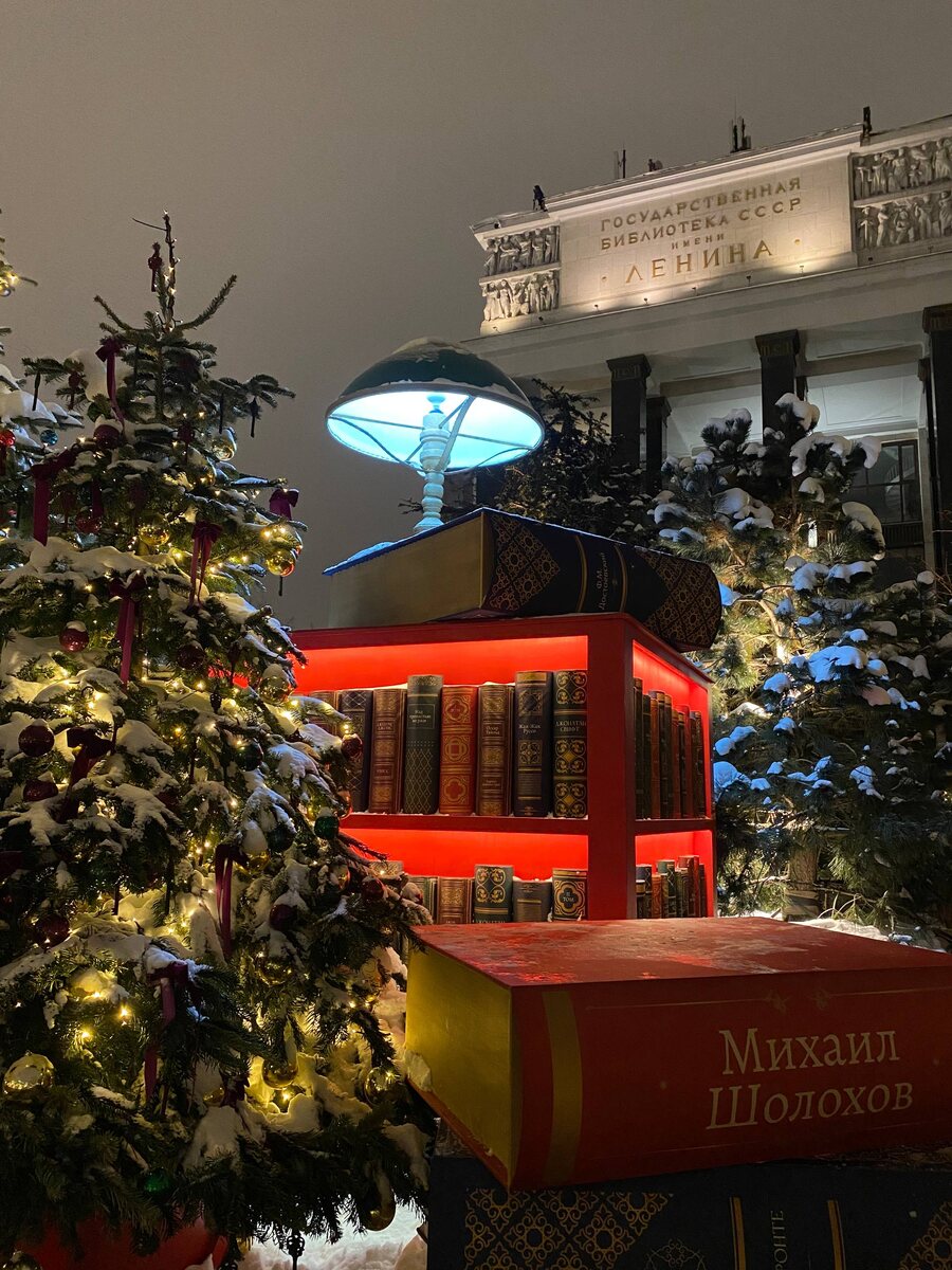 Книги, ёлочки и памятник Достоевскому около Ленинки замело снегом — стало ещё красивее и атмосфернее!