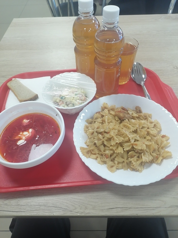 Я работаю сотрудником на крупном складе Озон, вот решил поделиться своими впечатлениями о Озоновских обедах, кормят довольно таки хорошо и самое главное бесплатно). Меню предлагают на выбор, что на первое блюда можно выбрать один суп из двух, что на второе, тоже можно выбирать, по мимо первого и второго, в обед входит салатик на выбор и стакан компота или морса, также за отдельную плату можно прикупить выпечку, сладости, фрукты, напитки. Сегодня я выбрал на первое борщ с майонезом, на второе макароны с мясом, салат оливье и компот. Также бесплатно в обед входит 3 кусочка хлеба) Пост автора Vitiania06. Читать комментарии на Пикабу.