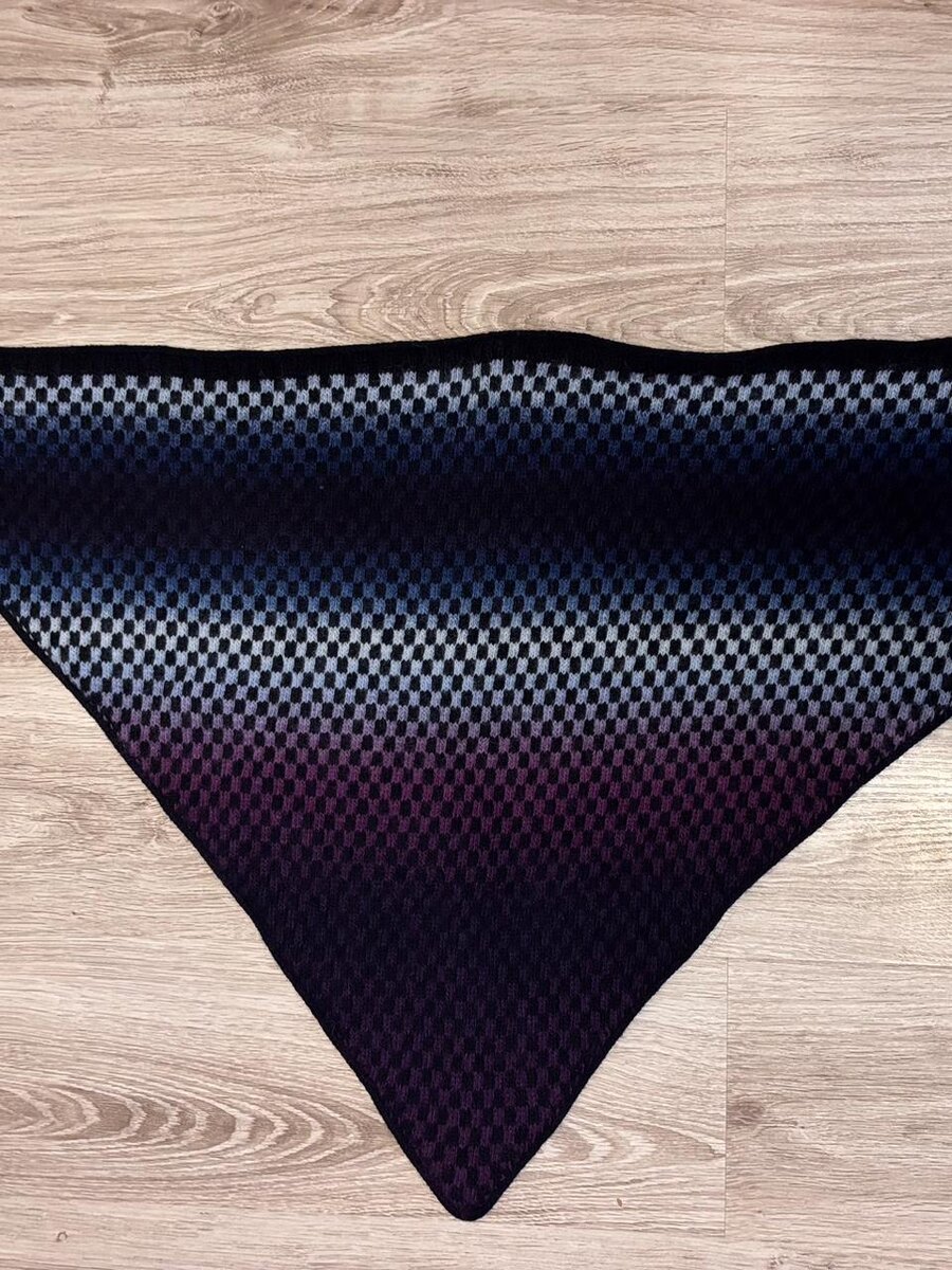 Хроники проекта Это история началась в ноябре, когда день становился совсем коротким, а списки дел, которые надо успеть "до", становились длиннее. Именно тогда на моих спицах оказался проект Squaropolis — шаль по описанию Maksim Syr, вобравшая в себя 93 000 петель, терпение и философию медленного дофамина. Итоговые цифры проекта: В основе — два мотка Schoppel, которые я купила в августе прошлого года в Москве. Их уникальность в том, что ни один моточек не повторяет другой, есть только общее представлении о том, как выкладываются секции. Чтобы "сопоставить" секции - ты подключаешь "внутреннее зрение", смотришь на моток, моток смотрит на тебя.....и ты понимаешь, что этот тебе не подходит, а вот тот 3-й с конца и...возможно 5-й сначала - процентов на 70 совпадут, значит вяжем. 🎨 Но до ноября я боялась начинать проект, т.к. понимала, что сопоставлять участки цвета все равно придется. Я буквально «отгрызала» нити и комбинировала участки из двух мотков, чтобы добиться идеального перехода