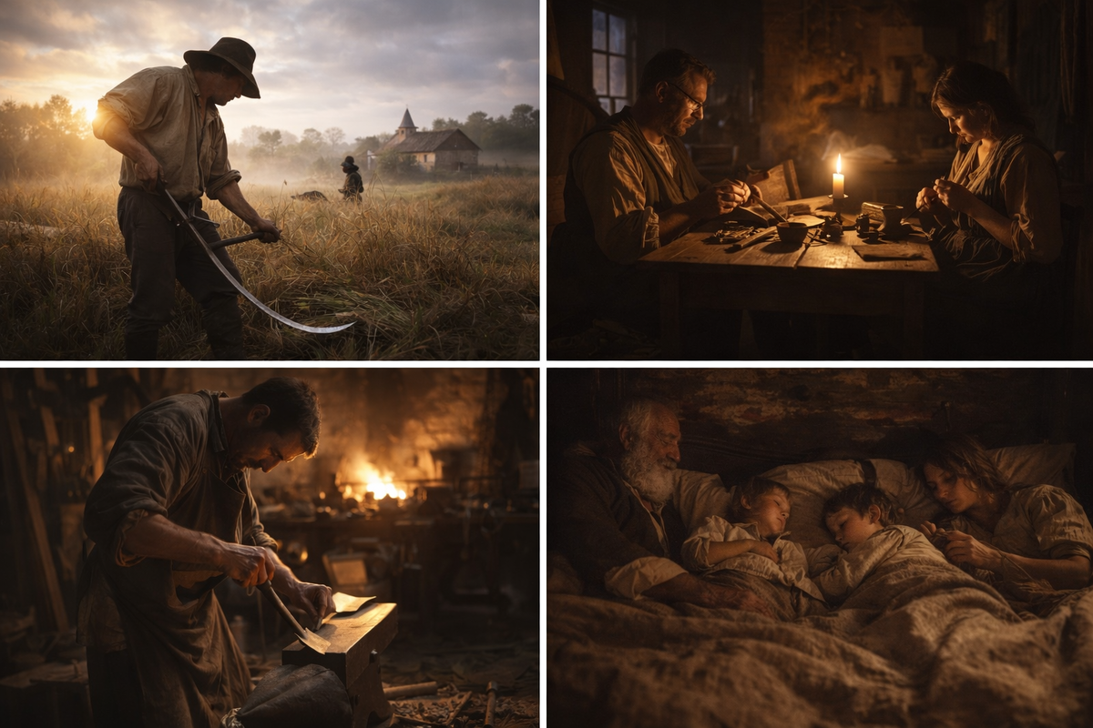 Когда говорят о жизни 300 лет назад, её обычно представляют либо как романтическую открытку, либо как бесконечную череду страданий. В одном случае — свечи, камин и неспешные разговоры. В другом — грязь, болезни и ранняя смерть. Реальность, как обычно, была сложнее и куда интереснее. Обычный день человека прошлого был не беднее и не богаче нашего — он был просто другим по логике. В нём иначе распределялось время, иначе ощущалось тело, иначе воспринимались усталость, тишина и опасность. И самое важное — люди не считали свою жизнь тяжёлой по умолчанию. Это была норма. Сразу важно уточнить: речь не о знати и не о придворных. Большинство людей: Именно их день и был «обычным». 300 лет назад часы были редкостью. Будильников не существовало. Люди просыпались: В городах утро начиналось рано из-за торговли и ремёсел. В деревнях — из-за света и работы в поле. Проспать было трудно не потому, что боялись опоздать, а потому что ритм жизни совпадал с природным циклом. Современная идея завтрака как в