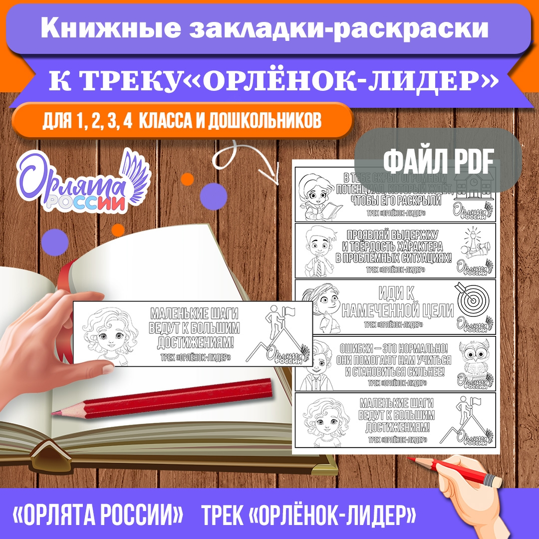 📩 Представляю вашему вниманию пособие для юных лидеров — раскраски-закладки, созданные специально для участников проекта «Орлята России» к треку «Орлёнок-Лидер». 📃 Что вы получаете: • 5 тематических закладок на одном листе А4 • Мотивирующие фразы, вдохновляющие на достижение целей • Интересные изображения, развивающие творческие способности • Удобный формат для печати (PDF) 📃 Почему это важно: • Помогает привить любовь к чтению • Развивает творческие навыки • Формирует лидерские качества • Создаёт атмосферу участия в масштабном проекте 📌 При печати закладок рекомендуется использовать материалы повышенной плотности. Оптимальными вариантами являются белый картон или акварельная бумага. Можно использовать и простую офисную бумагу, просто после печати наклейте закладки на плотный картон любого оттенка). Это значительно повысит прочность и долговечность готовой закладки. ❗❗ Как получить этот материал? ПОДРОБНОСТИ ЗДЕСЬ ❗❗ ------------------------- #орлятароссии #орлята_россии #трекор