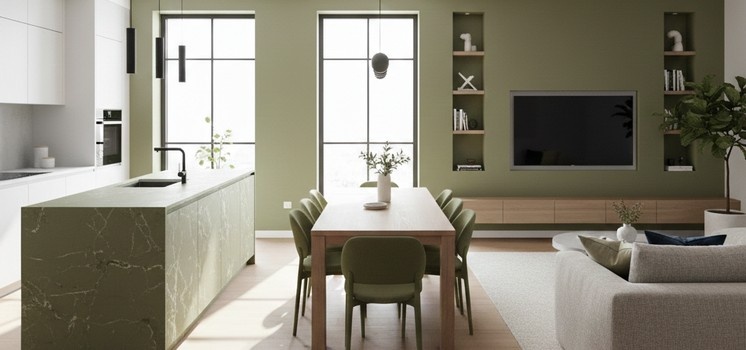 Выбор цветовой гаммы для ремонта квартиры евротрешка определяется особенностью планировки – наличием просторной кухни-гостиной и двух отдельных комнат. Для общего пространства оптимальны светлые нейтральные тона: бежевый, светло-серый, молочный. Они визуально расширяют помещение. Акцентные цвета – глубокий синий, терракотовый, оливковый – используются дозированно в текстиле и декоре.