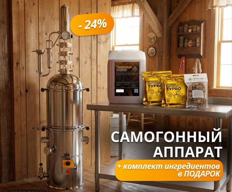 ! Успевайте забрать выгодное предложение на сайте: 🥃 Самогонный аппарат для дистилляции на 54 литра со скидкой -24% + набор ингредиентов в ПОДАРОК!! 👉 К аппарату В ПОДАРОК входят: - Солодовый концентрат пшеничный — 14 кг; - Дрожжи для самогона — 2 пачки по 100 г; - Дубовые кубики для выдержки. 🎁 Не упустите возможность забрать выгодный комплект для себя или в подарок! Количество комплектов ограничено! КУПИТЬ