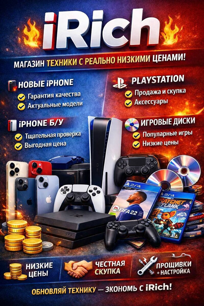 ! 🔥 Ищешь выгодно iPhone или PlayStation? Тогда тебе в iRich — мы знаем, как предложить максимум за разумные деньги. 📱 Новые iPhone — только оригинальные устройства — гарантия качества — актуальные модели в наличии 📱 iPhone б/у — тщательная проверка перед продажей — отличное состояние — выгодная цена без переплат 🎮 PlayStation — продажа консолей — скупка приставок — большой выбор аксессуаров 💿 Игровые диски — популярные и редкие игры — отличное состояние — выгодные цены ⚙️ Прошивки и настройка — быстро — безопасно — профессионально 💰 Низкие цены каждый день 🤝 Честная скупка техники 🔍 Проверка устройств при тебе На ТГк: https://t.me/irich_adler Наш inst: irich_adler Наш номер для связи: +79054118118