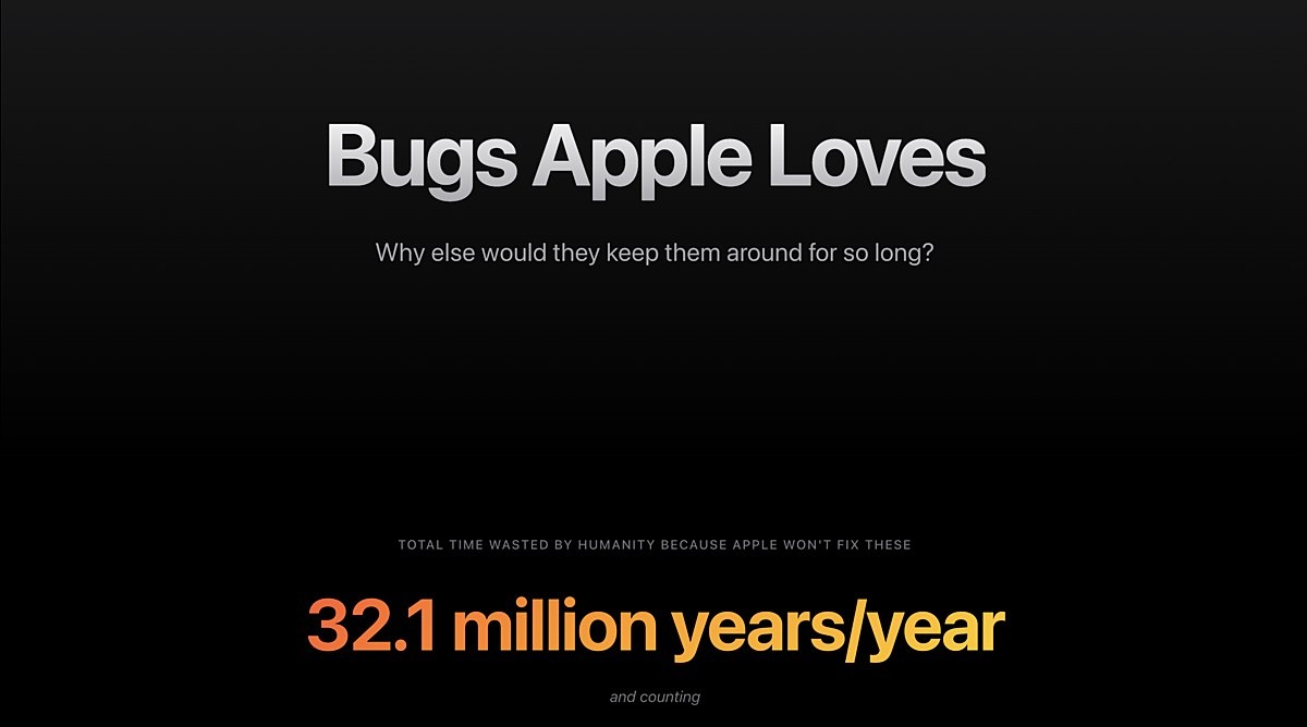 Автокоррекция его меняет. Вы удаляете его и набираете то, что хотели. Автокоррекция снова меняет его. Вы исправляете его снова. Она снова меняет его. Таким образом, вы вручную исправили это слово дважды, ясно давая понять, что хотите, чтобы оно было именно таким. Автокоррекции всё равно. Она будет стоять на своём». Энтузиасты создали сайт со списком багов в системах Apple, которые компания не исправляет годами, а также подсчитали потраченное «впустую» время пользователей vc.ru/apple/2703232