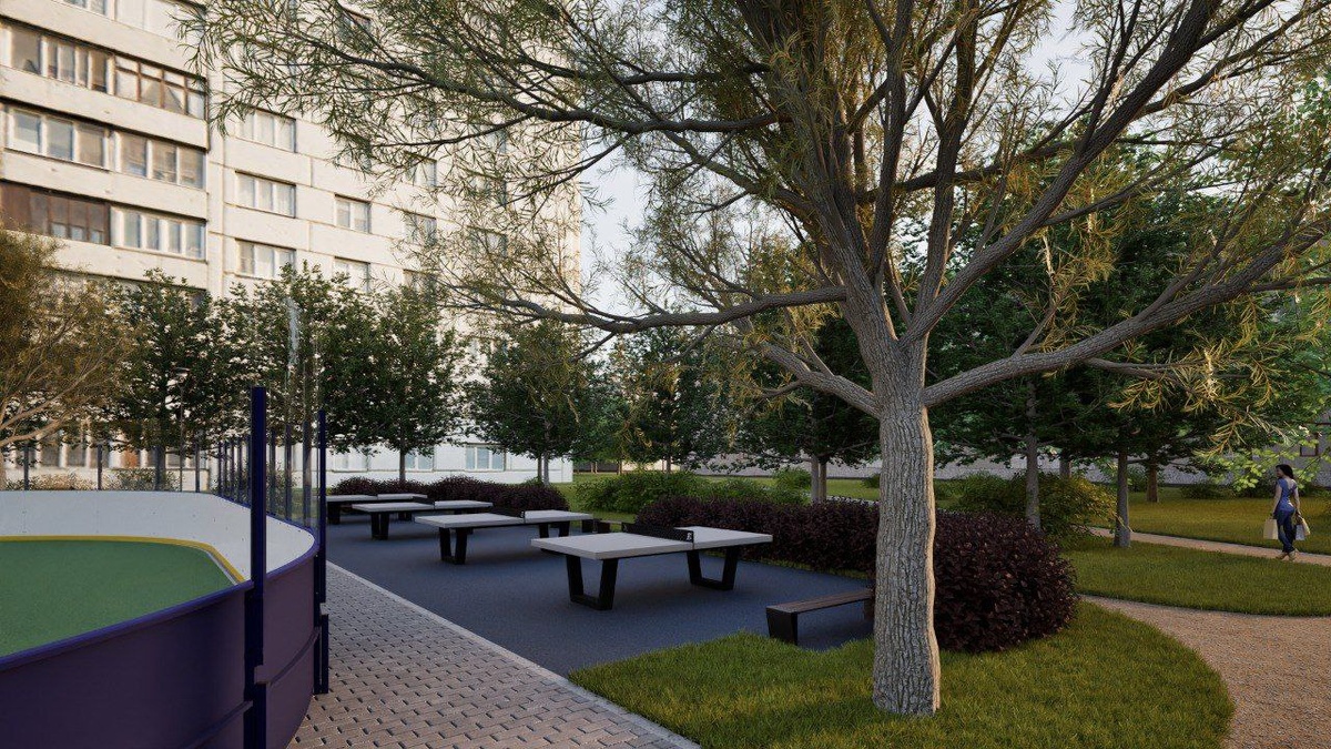 ! Что мы задумали? Главная цель — сделать это место суперприятным, и главное, притягательным для спорта и отдыха! • Наш дизайн — он современный и очень аккуратный. Мы постарались, уместить все спортивные сооружения, а их немало: Современную хоккейную площадку, дополненную трибуной для зрителей, площадку с панно футболом, зону, оборудованную для игры в настольный теннис, баскетбольную площадку, отвечающую современным стандартам. И нам это удалось, место осталось даже для неспешных прогулок по скверу. Что изменится? После нашей работы этот жилой район засияет новыми красками! Территория станет намного удобнее и функциональнее. Грубо говоря, инфраструктура прокачается, станет комфортнее двигаться и дышать, а всё будет соответствовать самым высоким требованиям к эстетике и комфорту. Как мы следим за правилами? Мы очень старательные! Все наши решения по строительным нормам и правилам застройки Питера. (иначе бы мы не получили согласований Комитет по Градостроительству и архитектуре,