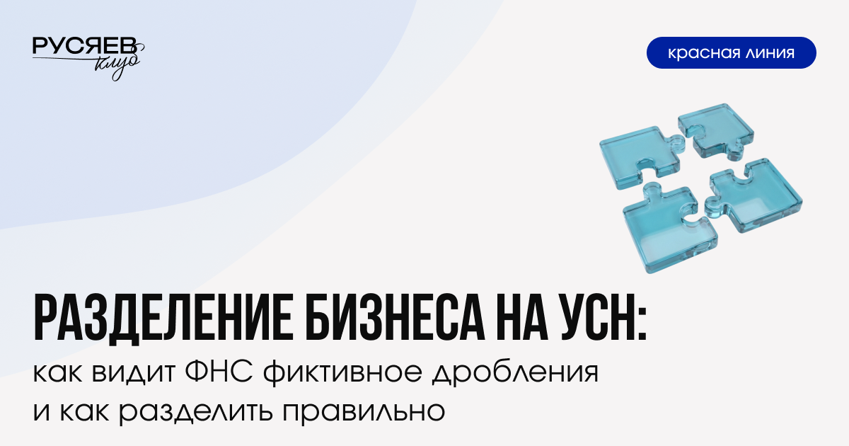 Соблазн фиктивного дробления бизнеса — одно из последствий налоговой реформы-2026: базовая ставка НДС выросла до 22%, а порог выручки на УСН для освобождения от НДС снижен с 60 млн до 20 млн руб. (далее — 15 млн руб. в 2027 и 10 млн руб. в 2028). На этом фоне так и хочется раздробить компанию на несколько юрлиц или ИП, чтобы держать выручку каждого ниже порога и сохранить льготы. Но такое дробление — зона повышенного риска: ФНС обычно объединяет деятельность как единую и доначисляет налоги, пени и штрафы. Разделить бизнес можно, но по правилам. На схеме зеленым цветом отмечено, где разделение оправдано, а красным — признаки искусственного дробления, которое может быть признано налоговыми органами незаконным. В полной версии материала в Русяев Клубе вы найдёте чек-лист, по которому сможете себя проверить для снижения рисков претензий ФНС и доначислений.