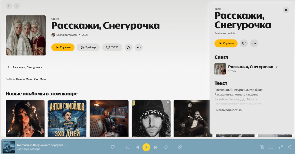 Январь 2026 года - переломный момент для музыки: впервые песни, созданные с помощью искусственного интеллекта, не просто появились в стримингах, а уверенно обосновались на вершинах чартов. Это уже не экспериментальные треки для узкого круга энтузиастов, а полноценные хиты, которые слушают миллионы. Согласно анализу, проведенному по данным крупнейших платформ, с 31 декабря 2025 по 11 января 2026 года песня «Расскажи, Снегурочка» от проекта Sasha Komovich собрала на Яндекс Музыке около 2 миллионов прослушиваний, заняв 3-е место в чарте интереса аудитории. При этом трек вошел и в топ самых прослушиваемых песен в новогоднюю ночь. Это не единичный случай. Трек «Внутренний голос» в тот же период расположился на 6-м месте в VK Музыке, а композиция «На мурмулях» заняла 4-ю строчку в чарте этого же сервиса. Резкий взлет объясняется стечением нескольких факторов. Современные нейросети, такие как Suno AI, научились нормально работать с русским языком, генерируя не только грамотные, но и эмоционал