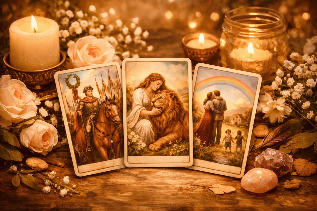 Сегодня я разложила карты на четыре простых, но невероятно важных вопроса: его мысли, его чувства, его действия и то, что ждёт вас впереди. И знаете, этот расклад получился удивительно глубоким — здесь есть и сила, и страх, и надежда, и та самая боль роста, через которую проходят отношения, способные стать чем-то настоящим.
