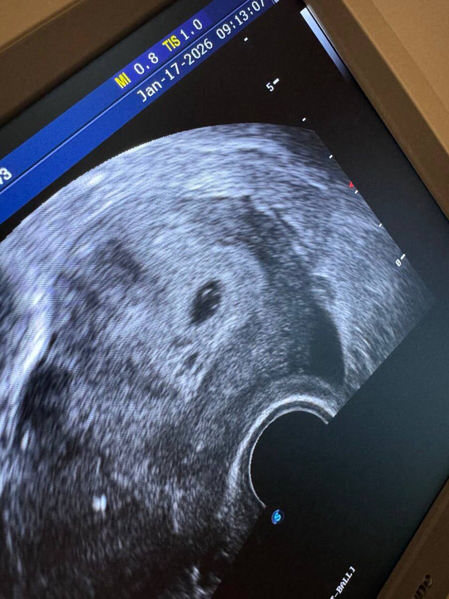 Здесь беременность 4-5 нед, самого малыша пока не видно, то видим желточный мешочек , значит беременность развивается.