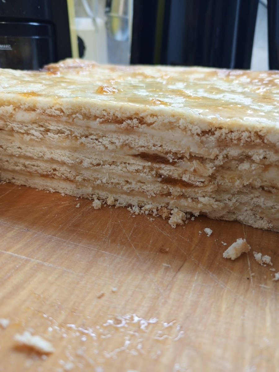 Тесто песочное. 300 г слив.масла смешать с 200 г сахара. 1 яйцо, чуть соли, муки до густоты. Разделить на 5 частей, положить в холод. Тортик получается маленький, но он очень сытный и сладкий, так что в самый раз! Крем заварной. 1 яйцо, 800 г сахара, 25 г муки, ванилин - перемешать. Влить 250 мл молока. Варить до первых "бульков". Мешать постоянно. Добавить 50г сливочного масла после снятия с огня. Накрыть плёнкой вконтакт, оставить до полного охлаждения. После крем слегка взбить. Намазать каждый корж абрикосовым повидлом или вареньем, сверху заварной крем. Верх торта смазать повидлом. Правильный «Абрикотин» — это когда в каждом кусочке чувствуется баланс: влажные, в меру пропитанные коржи, яркая нотка абрикосового джема и лёгкий крем. Десерт, который не пытается удивить сложностью, а покоряет тёплой, душевной простотой. Как визитка из детства. Готовьте с удовольствием! #готовимдомавкусно #торт #десерт #абрикосовый_джем #песочное_тесто #сливочное_масло #выпечка #заварной_крем