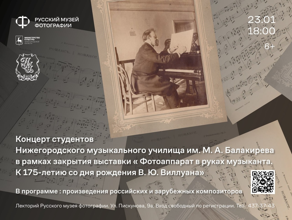 Сегодня, 23 января в 18:00 в музейном лектории Русского музея фотографии концерт студентов Нижегородского музыкального училища им