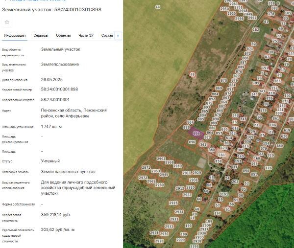 Название: Земельный участок с кадастровым номером 58:24:0010301:898 площадь 1747 по адресу Пензенская область, Пензенский район, село