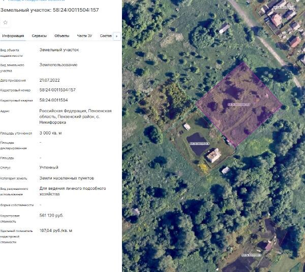 Название: Земельный участок с кадастровым номером 58:24:0011504:157 площадь 3000 по адресу Российская Федерация, Пензенская область