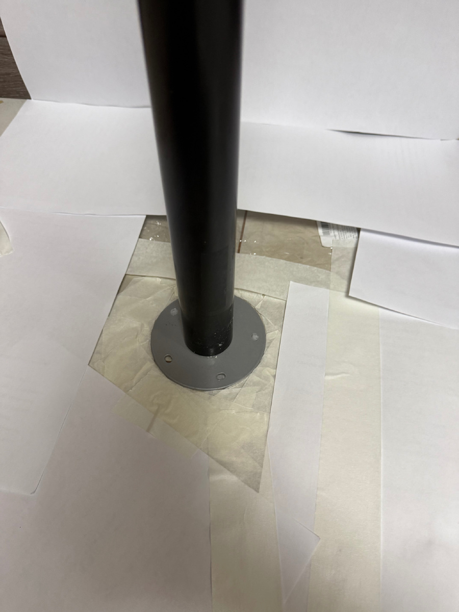 Плитку вокруг опоры я заклеила бумагой, закрепив ее скотчем