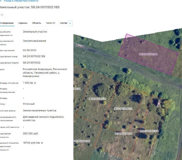 Название: Земельный участок с кадастровым номером 58:24:0011502:189 площадь 1500 по адресу Российская Федерация, Пензенская область