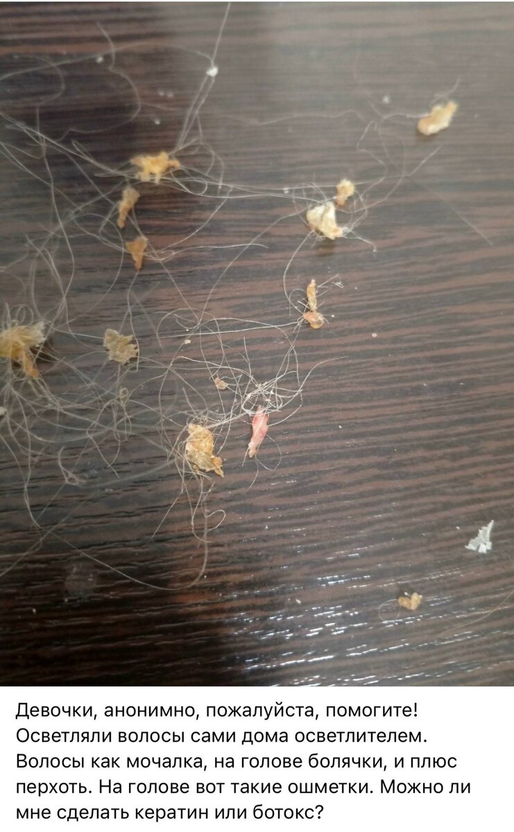 мочалка, болячки и перхоть на голове — вот к чему приводит домашнее осветление без профессионального контроля! На фото видно, насколько повреждены волосы и кожа головы. Для меня это наглядный пример того, что экономия на уходе и профессиональных услугах может обернуться серьёзными последствиями. Нет денег — не делай: последствия могут быть губительными, как у автора этого поста. Берегите себя и свои волосы — доверьте волосы специалистам! Мы не просто так обучения проходим ☝🏻