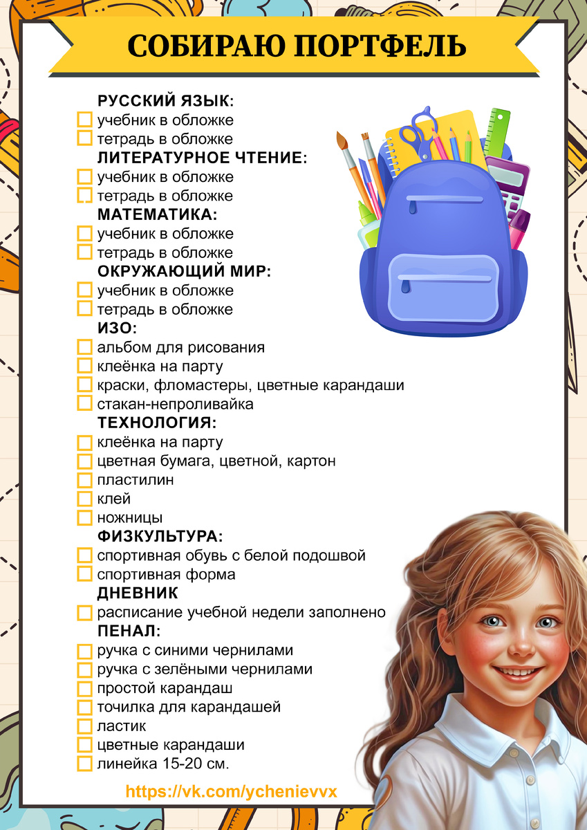 Чек-лист «Собираю портфель» (для мальчиков и девочек)